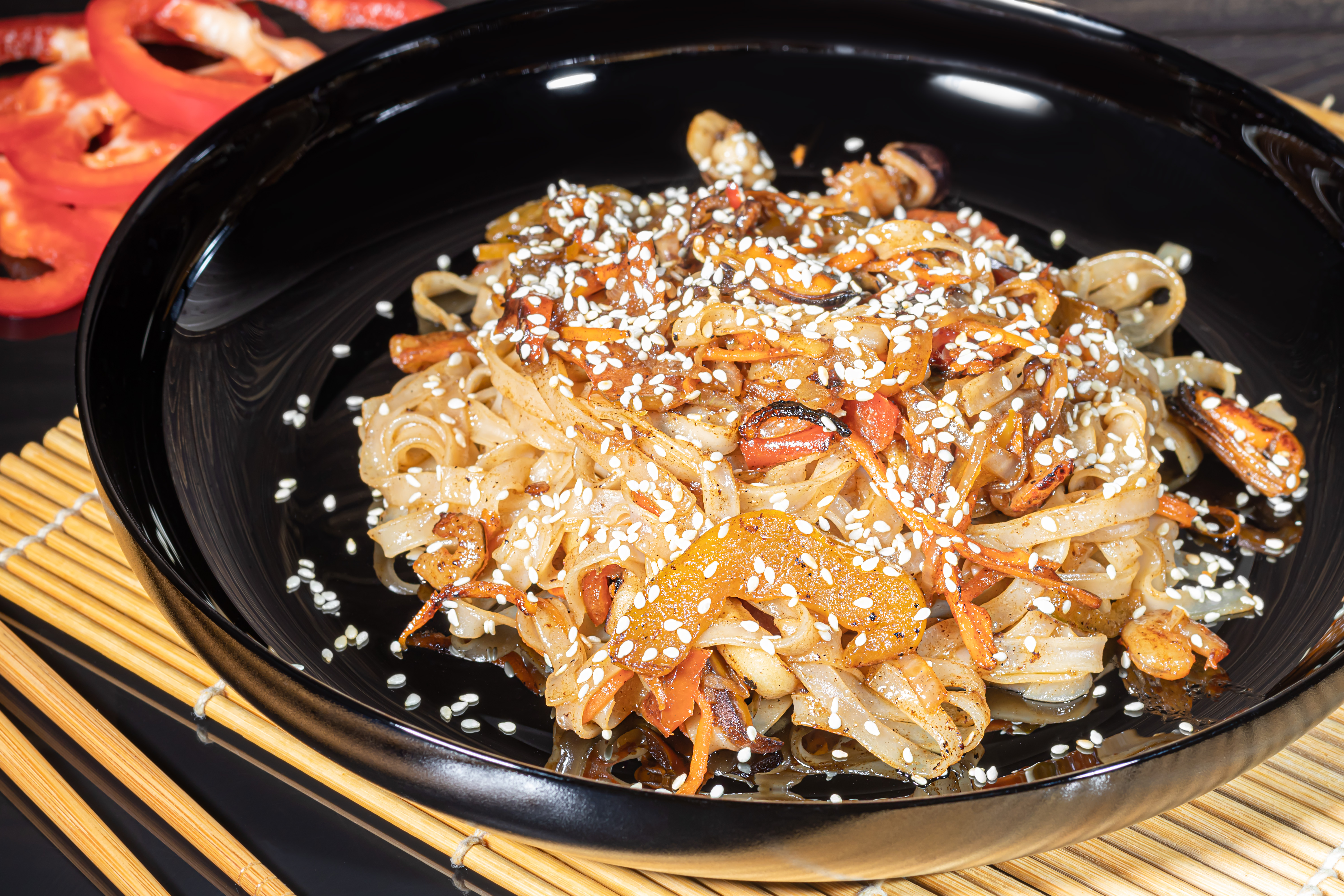 - Przełóż makaron na talerze. Posyp świeżą kolendrą lub szczypiorkiem. Opcjonalnie dodaj posiekane orzeszki ziemne dla chrupkości.