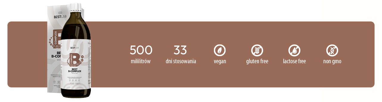 Best B-Complex to formuła opracowana z myślą o osobach, które chcą wspierać codzienne funkcjonowanie organizmu i prawidłowy metabolizm. Dodatkowym atutem produktu jest jego płynna forma, dzięki czemu zdecydowanie łatwiej można podać go dzieciom oraz osobom mającym problem z połknięciem suplementów w kapsułce.