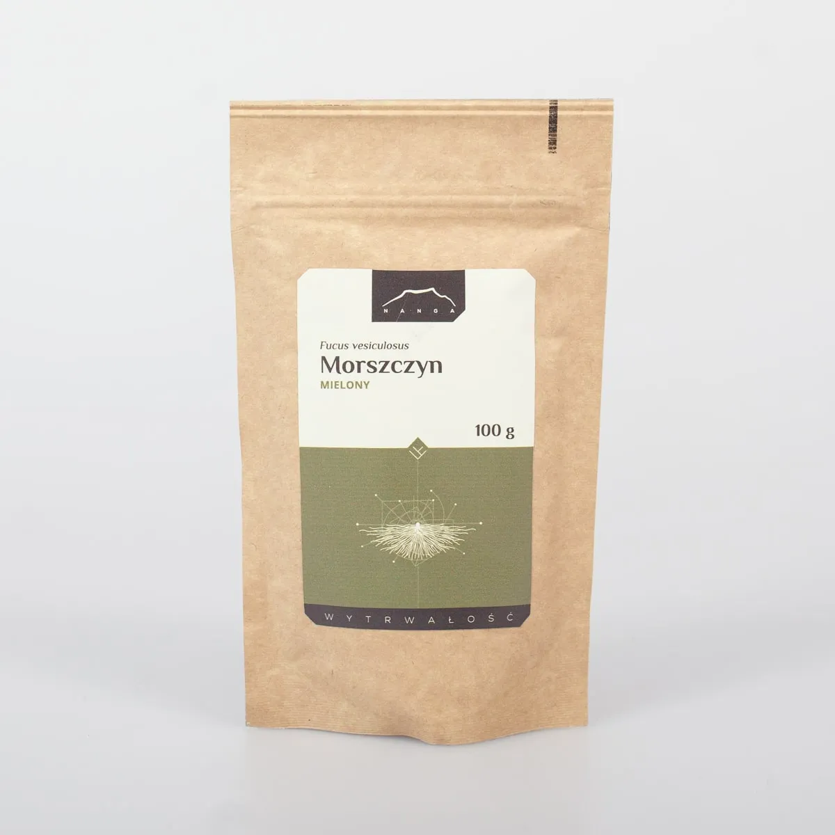 Morszczyn pęcherzykowaty (Fucus vesiculosus) – nazywany także kelpem, to glon morski należący do brunatnic. Charakteryzuje się oliwkową plechą, która pokryta jest licznymi pęcherzykami. Spotykany jest zwykle w chłodniejszych strefach Oceanu Atlantyckiego i Spokojnego oraz w Bałtyku i Morzu Północnym. Morszczyn znany jest z wysokiej zawartości jodu, ale obok niego obecne są także inne składniki mineralne: wapń, potas, fosfor, siarka, żelazo, cynk. Stanowi on źródło wielu cennych witamin oraz takich substancji aktywnych, jak: polisacharydy, kwas alginowy, fukoidyna, mannitol, lamiryna, liczne antyoksydanty i kwasy tłuszczowe. Od setek lat morszczyn pęcherzykowaty jest ważnym elementem codziennej diety ludności nadmorskiej. Tradycyjnie stosowany był jako środek regulujący perystaltykę jelit i wspomagający odchudzanie. Przygotowywano z niego również okłady kojące skórę. Morszczyn to dobre źródło błonnika wspierającego prawidłową pracę jelit i układu pokarmowego. Zawarty w nim jod korzystnie wpływa na metabolizm, a jego odpowiedni poziom w organizmie odpowiada za optymalną pracę gruczołu tarczycy. Produkt skierowany jest do osób, które pragną dostarczyć swojemu organizmowi dodatkowej dawki jodu oraz innych cennych składników o korzystnym wpływie na zdrowie.