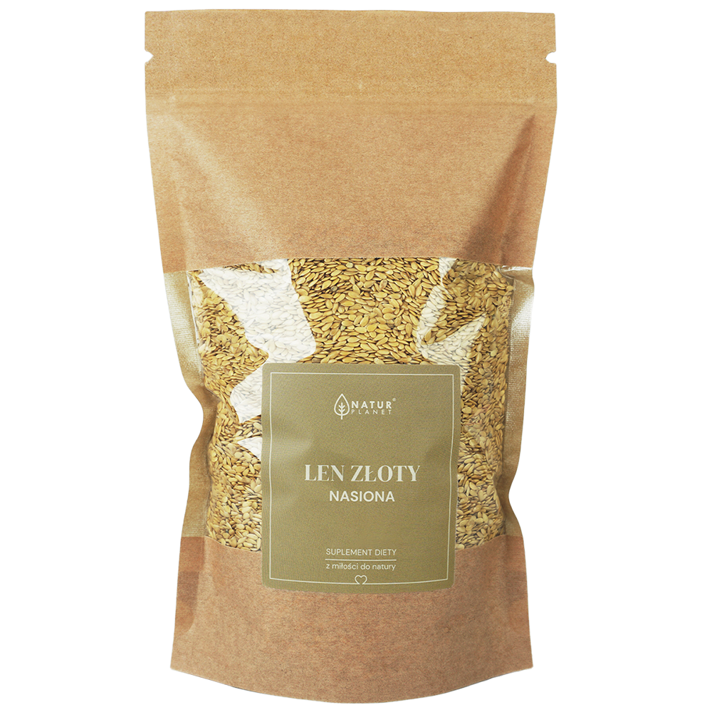 Suplement diety w postaci nasion zawierający siemię lniane złote. Uzupełnia codzienną dietę w błonnik.