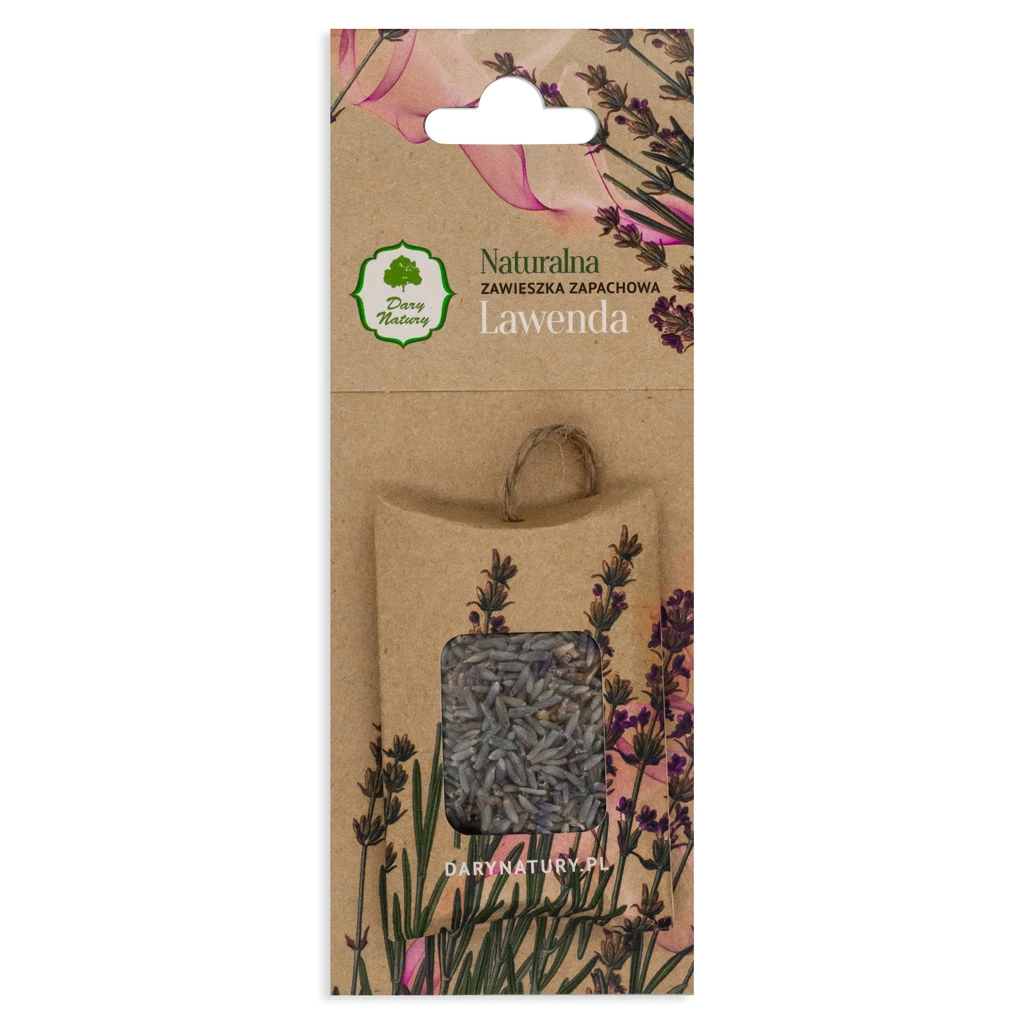 Naturalna zawieszka zapachowa będąca kompozycją suszonych kwiatów lawendy oraz lawendowego olejku eterycznego o kojącym, kwiatowym zapachu i relaksujących właściwościach.