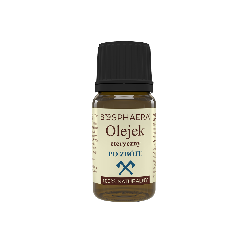 Olejek po zbóju, wykazuje niezwykle wielopłaszczyznowe działanie. Połączenie olejków: goździkowego, cynamonowego, limetkowego, cytrynowego, eukaliptusowego oraz rozmarynowego, to istna kompozycja zdrowia.