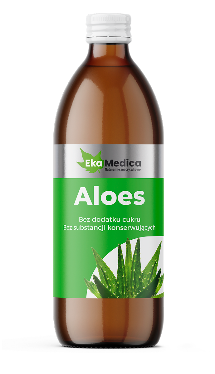 Aloes - suplement diety w formie płynnej wyprodukowany z soku 100% z liści aloesu.