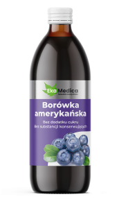 Sok z owoców borówki amerykańskiej (Vaccinium corymbosum L.) bezpośrednio tłoczony (NFC) 99,7% - wyprodukowano ze świeżego soku z owoców borówki amerykańskiej, standaryzowany ekstrakt z owoców camu camu (Myrciaria dubia) 0,3%, w tym naturalna witamina C. Porcja dzienna 50 ml zawiera 150 mg standaryzowanego ekstraktu z owoców camu camu, w tym 15 mg witaminy C, co stanowi 18% RWS*.