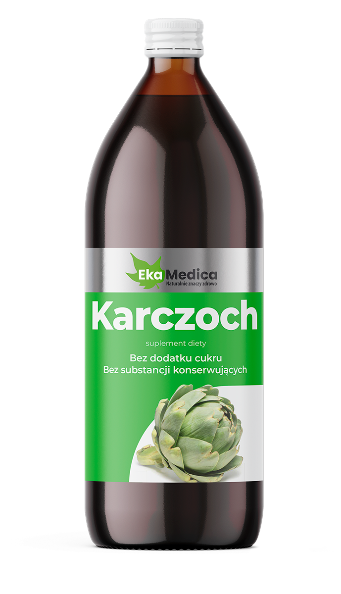 Suplement diety w formie płynnej wyprodukowany z soku 100% ze świeżych liści karczocha.