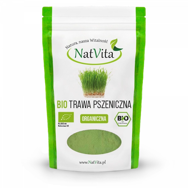 BIO Trawa pszeniczna to naturalne źródło witamin, białek i składników mineralnych. Jest źródłem witamin z grupy B, witaminy C, kwasu foliowego, wapnia, magnezu, potasu, cynku.