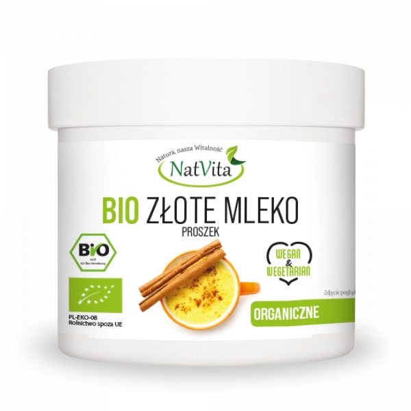Złote mleko to wyjątkowa, ekologiczna mieszanka, zawierająca bio składniki, takie jak kurkuma, imbir, kakao, cynamon, ashwagandha, cukier kokosowy oraz pieprz czarny.